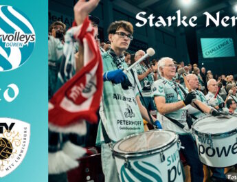 Im zweiten und vor allem im dritten Satz wurde das Spiel aus Dürener Sicht deutlich besser. Unsere Mannschaft machte weniger Fehler, stand stabiler. Robin sammelte Punkte für seine am Ende 79%ige Angriffsquote und Siebe ließ es ein paar mal ordentlich krachen, weil die Oranje-Connection mit Joris gut funktionierte. 25:20 und dann 25:15 für Düren. Das wirkte sich natürlich positiv auf die Stimmung der Fans aus.