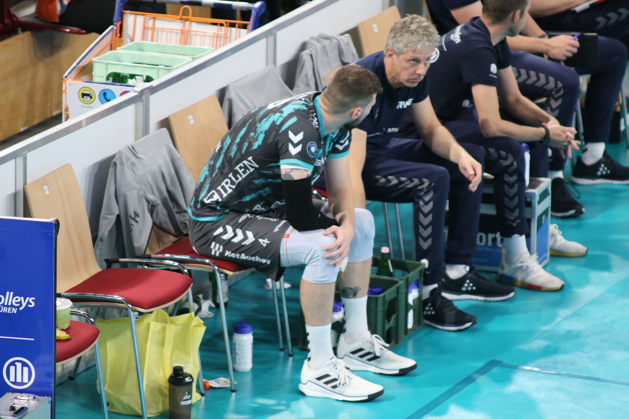 Die ersten beiden Sätze lassen sich schnell zusammenfassen. Am Anfang brauchten unsere Jungs ein paar Ballwechsel zum Warmwerden. Doch dann zeigten sie immer deutlicher, wer hier der klare Favorit war. Spätestens nach einem Fünf-Punkte-Lauf zum 15:8 war der erste Satz entschieden. Die Gastgeber machten genug Druck und ließen Haching beim 25:15 keine Chance. Die Bayern holten die ersten beiden Punkte des zweiten Satzes, doch Düren drehte auf 3:2 und zog dann auf 18:11 davon. 25:16, auch der zweite Satz war kein Problem.