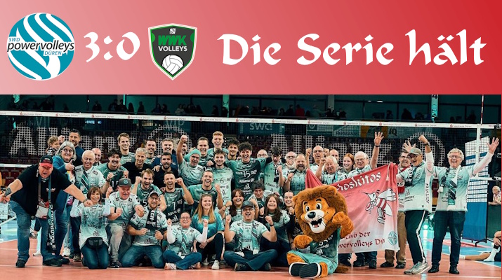 An diesem Sonntagnachmittag kam in der Arena Kreis Düren viel zusammen. Es war das diesjährige Karnevalsspiel, zugleich die Generalprobe vor dem Pokalfinale am Karnevalssonntag und dann gab es noch den Druck, weitere drei Punkte einzufahren. Letzteres haben unsere SWD Powervolleys nach einem anstrengenden Spiel mit einem 3:1 gegen die Netzhoppers KW geschafft.